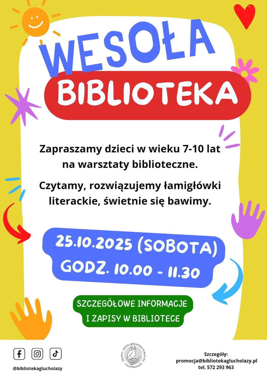 Wesoła biblioteka (Workshopy) 25.10.2025 od 10:00 do 11:30 hod. Głuchołazy, Głuchołazy Wesoła biblioteka | |
