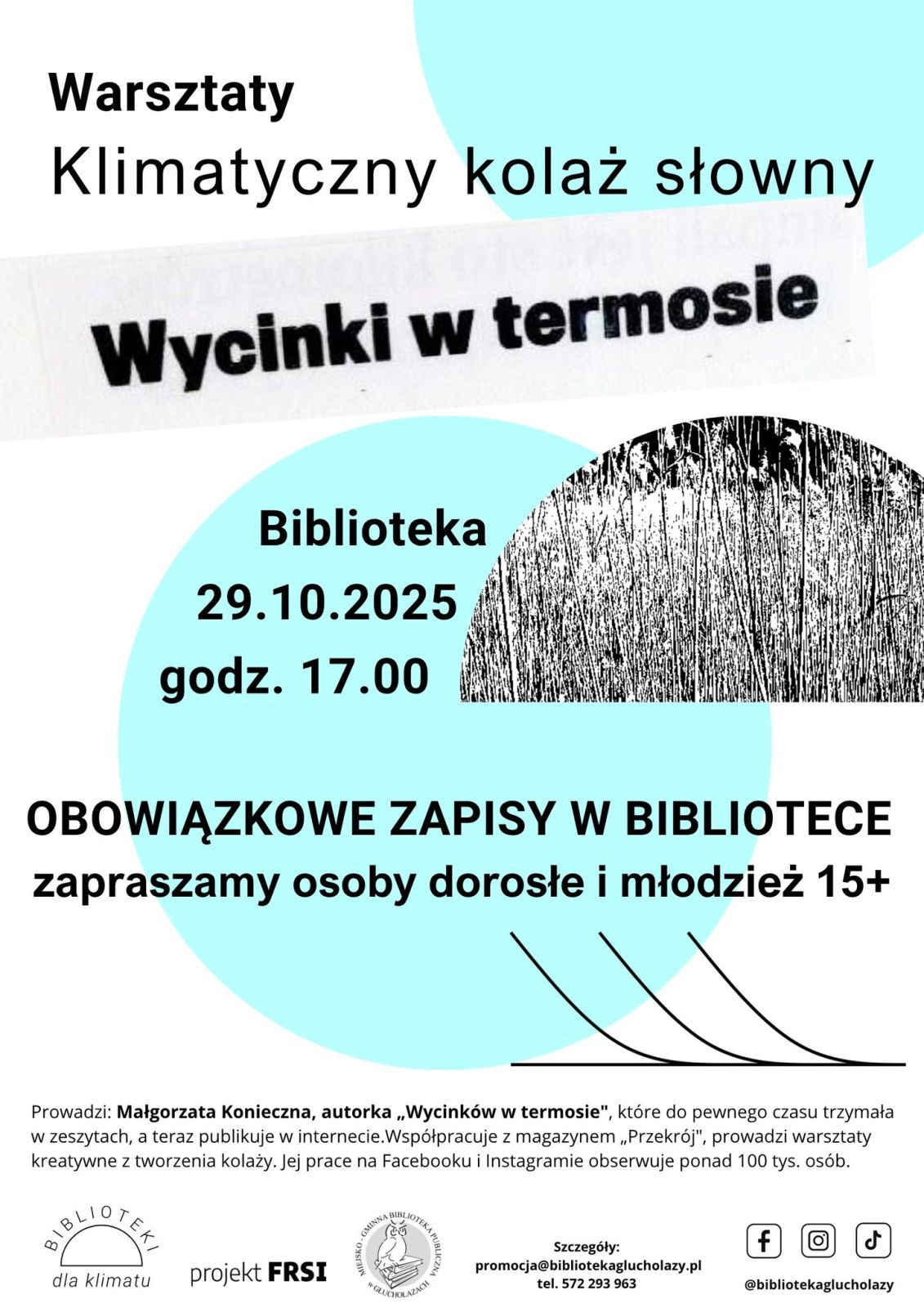 Warsztaty Klimatyczny kolaż słowny - Wycinki w termosie (Workshopy) 29.10.2025 od 17:00 do 19:00 hod. Głuchołazy, Głuchołazy Warsztaty Klimatyczny kolaż słowny - Wycinki w termosie | |